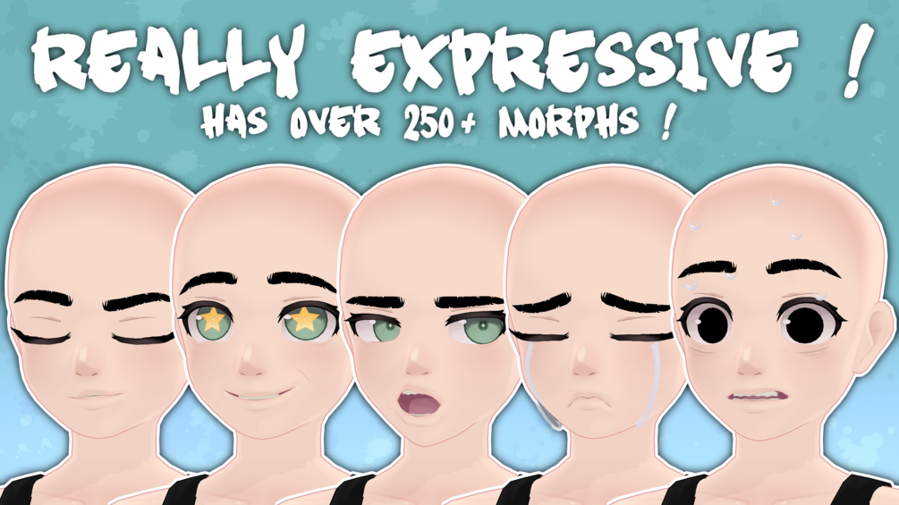 The model is morphable ans has a lot of expressions and bones which is perfect for really expressive animations for anyone !
